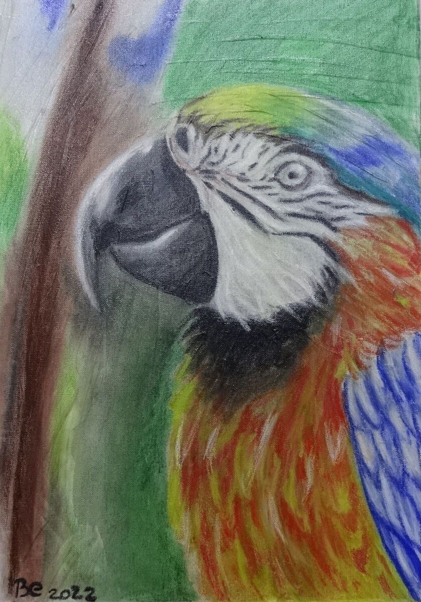 Es una obra realizada en cretas (pasteles a la tiza, softpastels) sobre tela de lienzo, en bastidor de madera. La tiza fue fijada a la tela con aerosol fijador de carbonillas y luego con barniz brillante de pintura. Esta obra es el bastidor solo, de 2cm de profundidad, sin marco agregado. Así como encuentro atractivo retratar animales y algunas cuestiones de la naturaleza, en esta ocasión busque el desafío de manipular el polvo de la tiza en otra superficie y de otra forma. Hasta el momento es el único cuadro de tela realizado con estos materiales.