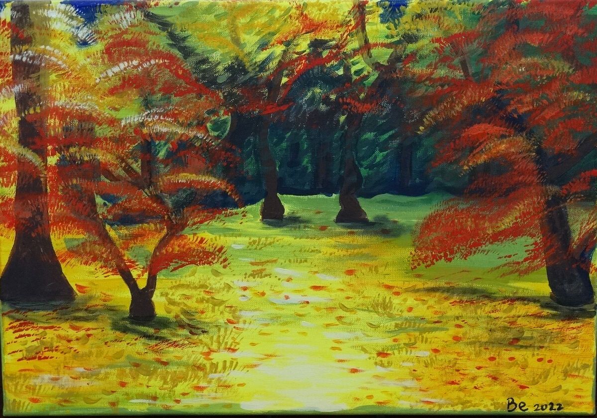 Un cuadro en pintura acrílica inspirado en las calles del pueblo Ubrique (España). Una pequeña representación de lo iluminado y llamativo que me resultan estos pueblos que conservan un aspecto bastante blanco en todas sus partes. Está es una primer experiencia tomando algunas características llamativas, paredes lisas blancas, techos rojos, algunas decoraciones rojas, pequeñas vegetaciones asomando entre las estructuras geométricas. Considero que voy a investigar más de este tipo de pueblos y crear otros paisajes referidos a ellos.