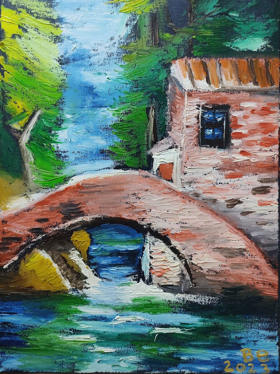 En este cuadro vuelco otra etapa de mi vida, que vuelve a repetirse, ya que me encuentro esperando mi segundo hijo. Queriendo darle valor y significado a cómo han influenciado en mí estos procesos, y lo importante que han sido ambos embarazos y nacimientos. Así como la investigación artística nos redescubre y nutre, estos momentos de vida me han entregado mucho. Prosa que acompaña al cuadro (cuando fue exhibida en la Muestra dedicada al Dia de la Mujer en Galeria T, en Buenos Aires, 2024): "El engranaje del Universo. Sos un comienzo y un proceso, somos una especie de canal, de puerta En ti se crea la vida, damos el nacimiento a nuevas almas, que a su vez protegemos. Tenemos la capacidad de crear, cuidar y guiar. Regas el camino con una parte tuya sacrificas, donas, parte de tu ser para que más vida siga creciendo cíclicamente. Curioso eslabón, canal somos, del Universo." Be, 2024